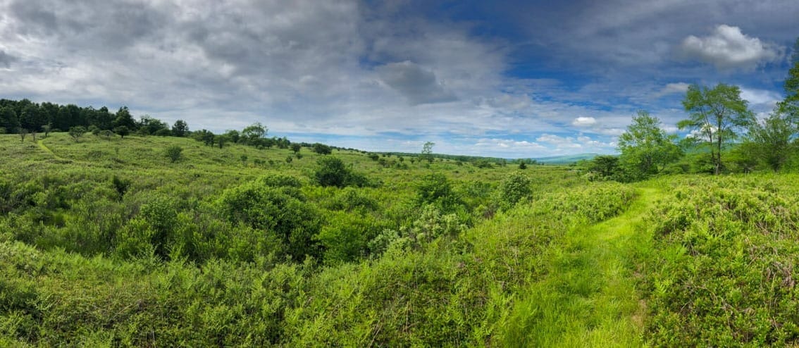 We climbed up A-Frame Road on the eastern rim of Canaan Valley and took a break at a spectacular overview of the Canaan Valley National Wildlife Refuge. It dawned on me that I had to cross the valley and climb up to the top of the far ridge. I didn't know if I had it in me. My friend Chrissy, a yoga teacher, encouraged me to stretch my back and legs using the railing for "legs up the wall" pose. As I lay on the deck, looking at the clouds overhead, I could feel all the used-up and tired energy draining from my lower body and getting restored with freshly oxygenated blood. The feeling came back to my feet. More rides would benefit from such a stretch!